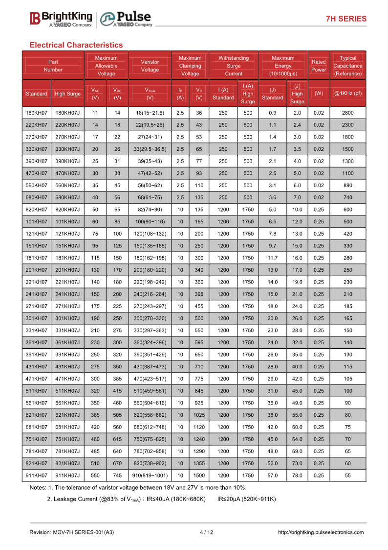 压敏电阻君耀BrightKing压敏电阻插件压敏电阻7H 系列301KH07 301KH07J