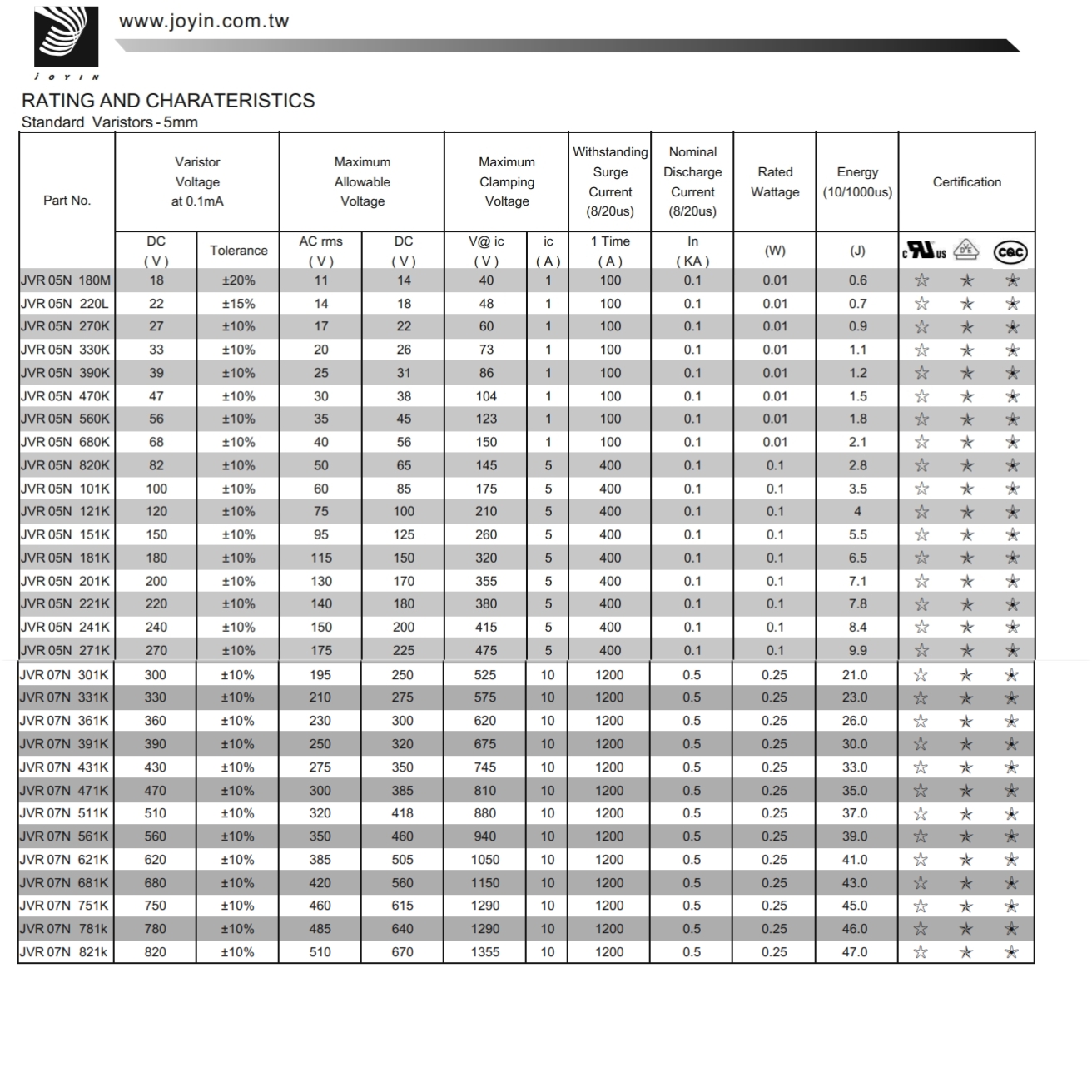 应用领域:金属氧化物压敏电阻(MOV或VDR)是电压依赖性电阻器,具有对称的电压-电流特性,旨在保护各种电子设备或元件免受开关脉冲或感应雷电浪涌的影响。它的非线性特性具有广泛的应用范围,从低到高的电压等级保护(AC11V-1000 V为可用范围),在各种级别的电气和电子设备中逐渐被采用,并具有批量生产的可行性。