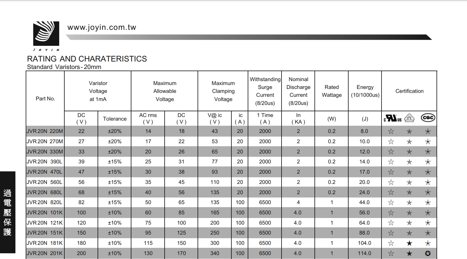 应用领域:金属氧化物压敏电阻(MOV或VDR)是电压依赖性电阻器,具有对称的电压-电流特性,旨在保护各种电子设备或元件免受开关脉冲或感应雷电浪涌的影响。它的非线性特性具有广泛的应用范围,从低到高的电压等级保护(AC11V-1000 V为可用范围),在各种级别的电气和电子设备中逐渐被采用,并具有批量生产的可行性。