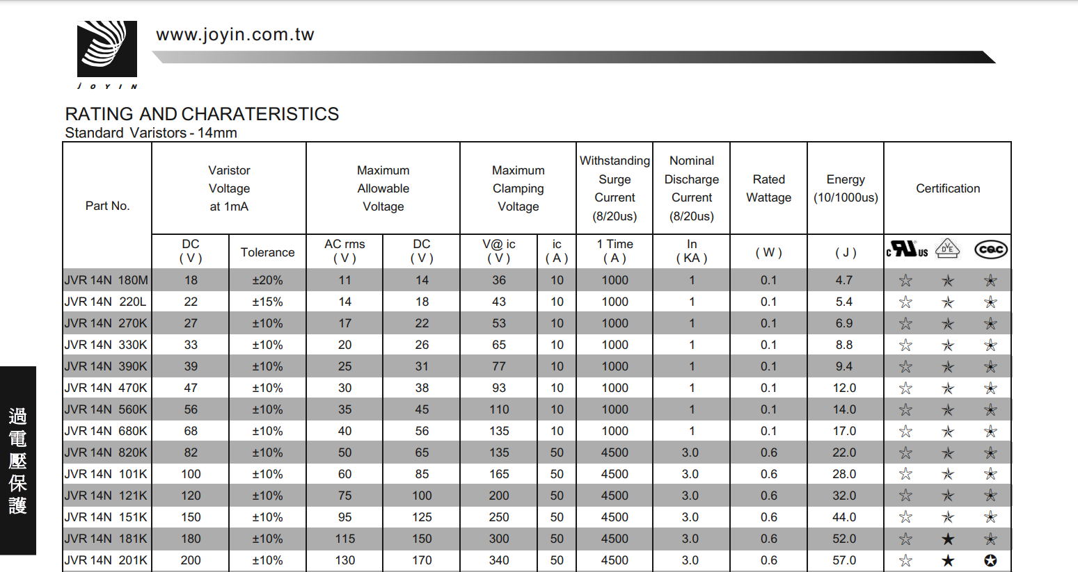 应用领域:金属氧化物压敏电阻(MOV或VDR)是电压依赖性电阻器,具有对称的电压-电流特性,旨在保护各种电子设备或元件免受开关脉冲或感应雷电浪涌的影响。它的非线性特性具有广泛的应用范围,从低到高的电压等级保护(AC11V-1000 V为可用范围),在各种级别的电气和电子设备中逐渐被采用,并具有批量生产的可行性。