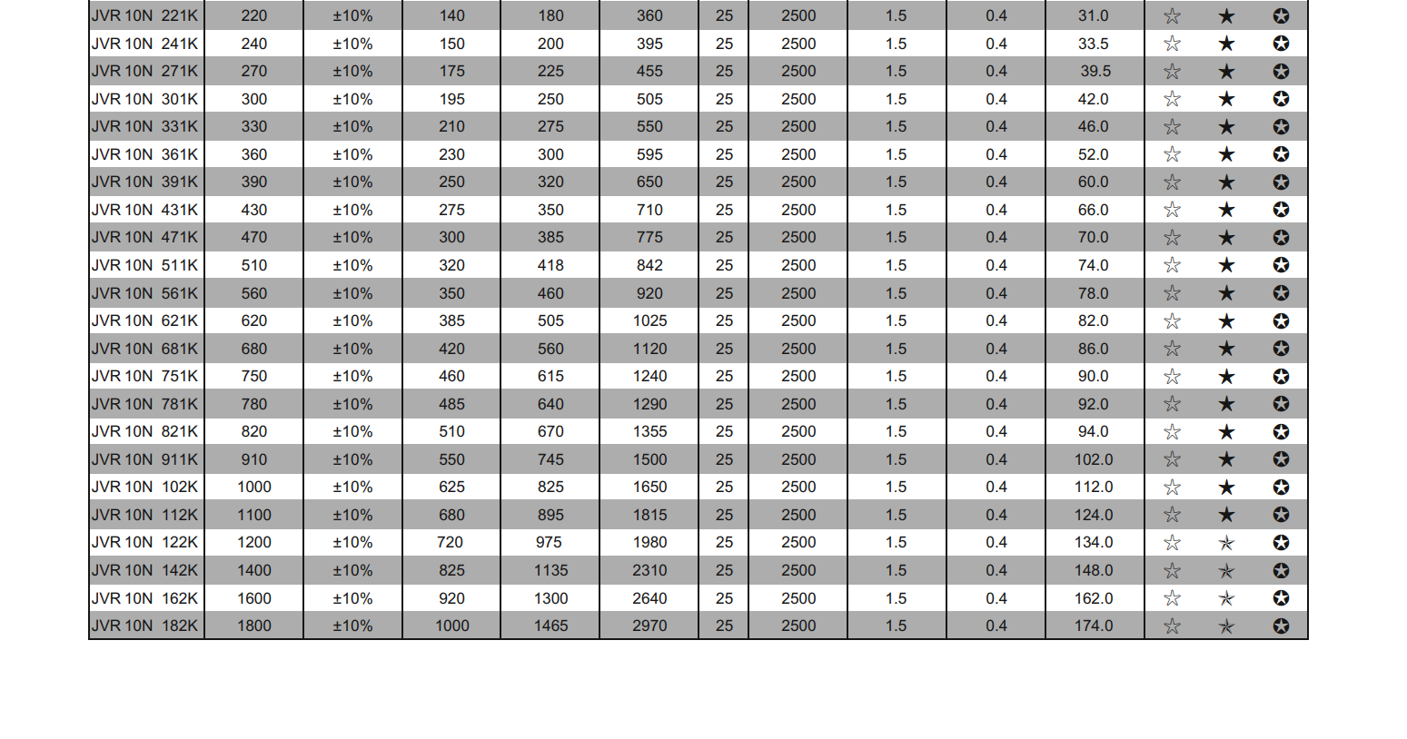 应用领域:金属氧化物压敏电阻(MOV或VDR)是电压依赖性电阻器,具有对称的电压-电流特性,旨在保护各种电子设备或元件免受开关脉冲或感应雷电浪涌的影响。它的非线性特性具有广泛的应用范围,从低到高的电压等级保护(AC11V-1000 V为可用范围),在各种级别的电气和电子设备中逐渐被采用,并具有批量生产的可行性。