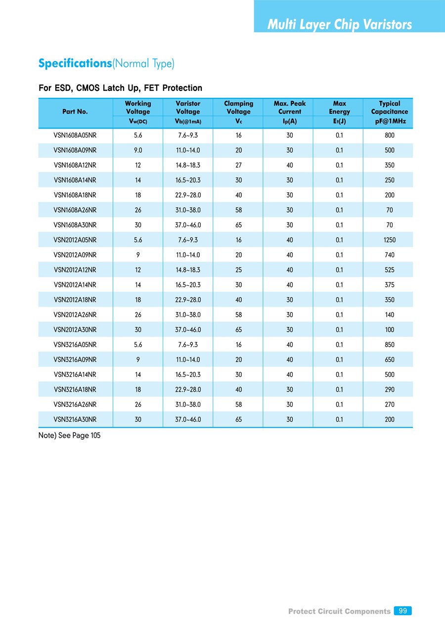 三和samwha压敏电阻贴片标准型VSN1608A05